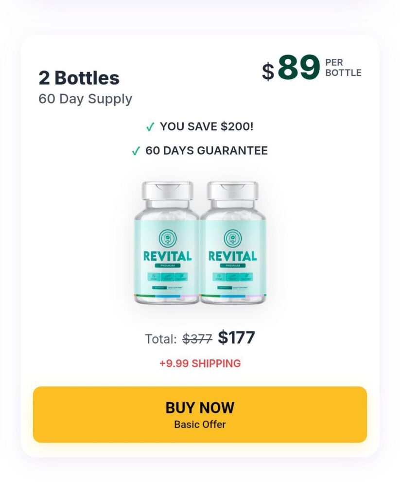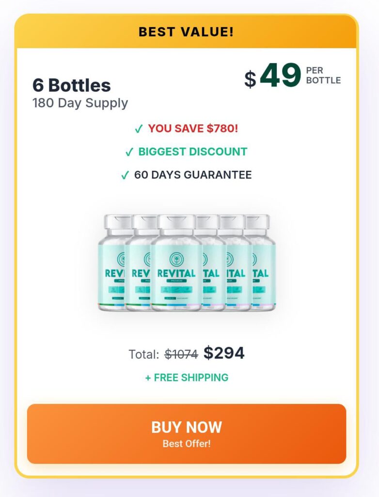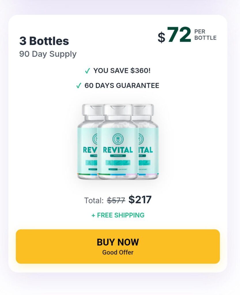 Currently, Revital is backed by a 60-day money-back guarantee, giving you ample time to try it risk-free. Free shipping is also available on select multi-bottle packages, along with exclusive discounts for new customers.